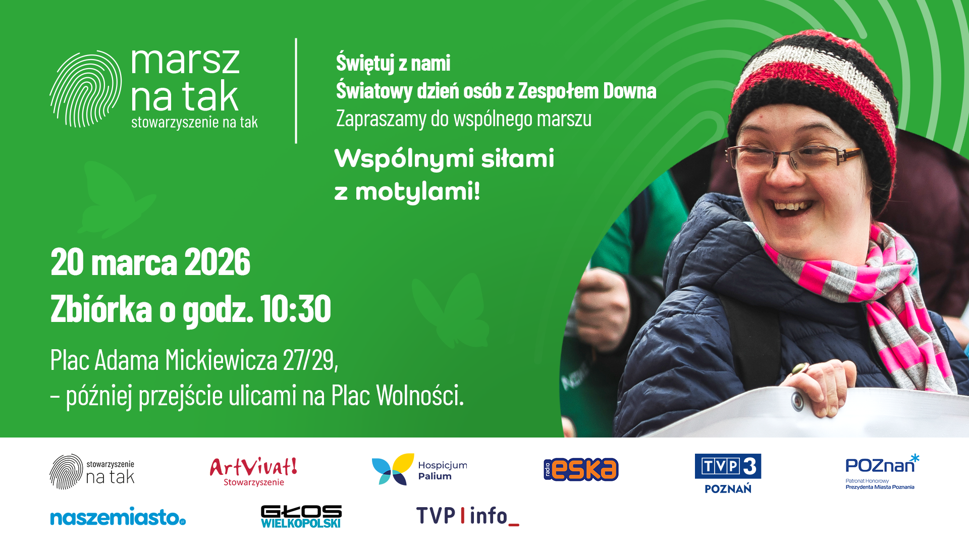– Nasze Stowarzyszenie od samego początku wspiera osoby z Zespołem Downa i ich bliskich, a także inne osoby z niepełnosprawnościami intelektualnymi. Od dekady organizujemy Marsz Na Tak, by zwrócić uwagę społeczeństwa na tych ludzi i pokazać im, że są to osoby, które mogą i potrafią funkcjonować w codziennym życiu jak każdy inny człowiek. Ponownie chcemy połączyć Poznaniaków w duchu wspólnoty i akceptacji, dlatego zachęcamy wszystkich do włączenia się w Marsz, który przejdzie przez centrum miasta 20-go marca – mówi Dorota Borowska, dyrektor Stowarzyszenia Na Tak.